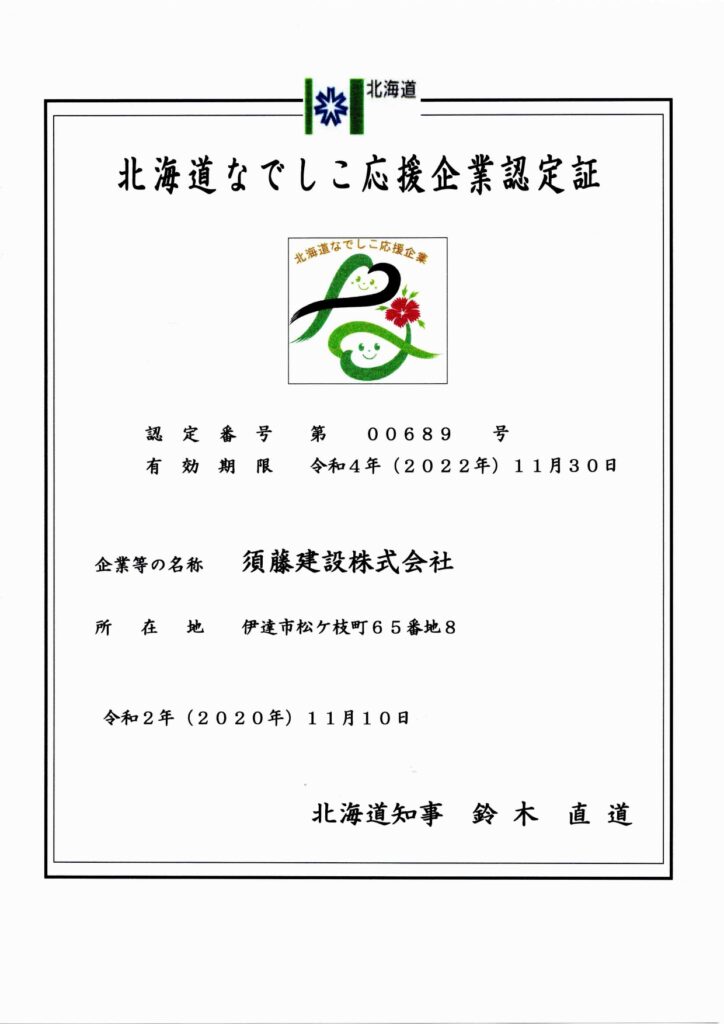 併せて、【北海道あったかファミリー応援企業】【北海道なでしこ応援企業】に登録いたしました。