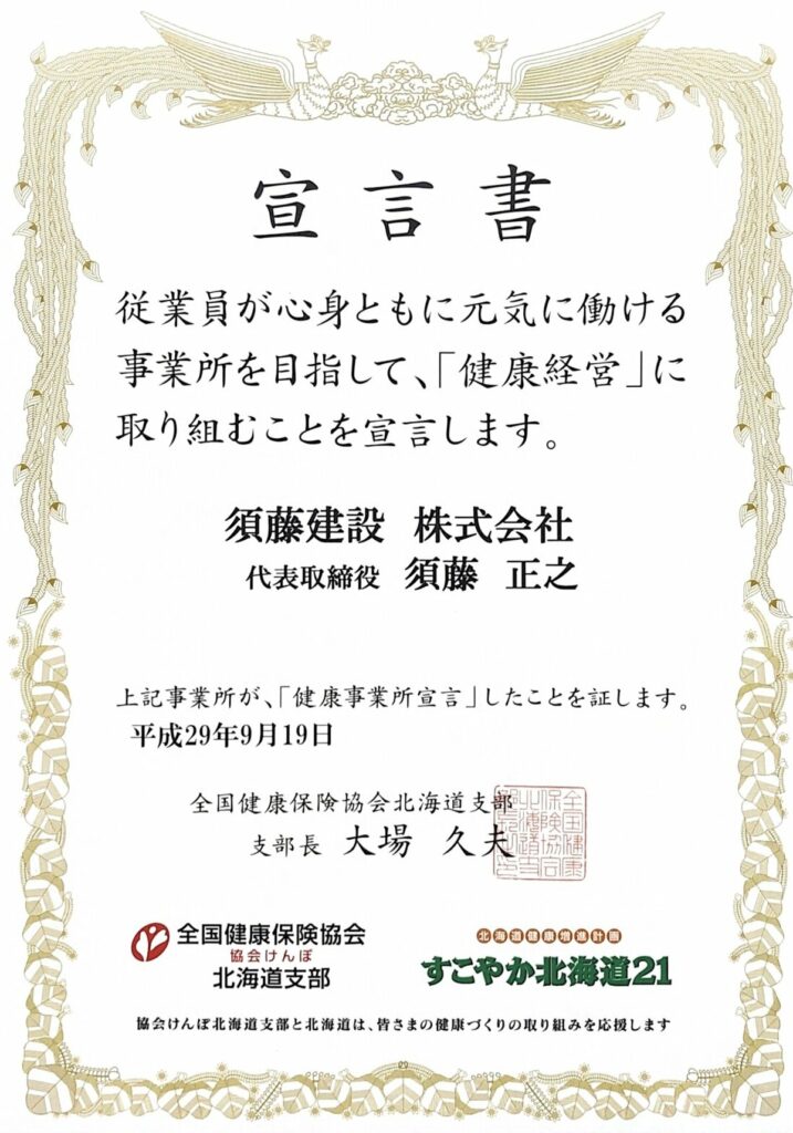 平成29年9月19日付けで健康事業所宣言事業所として認定を受けました。