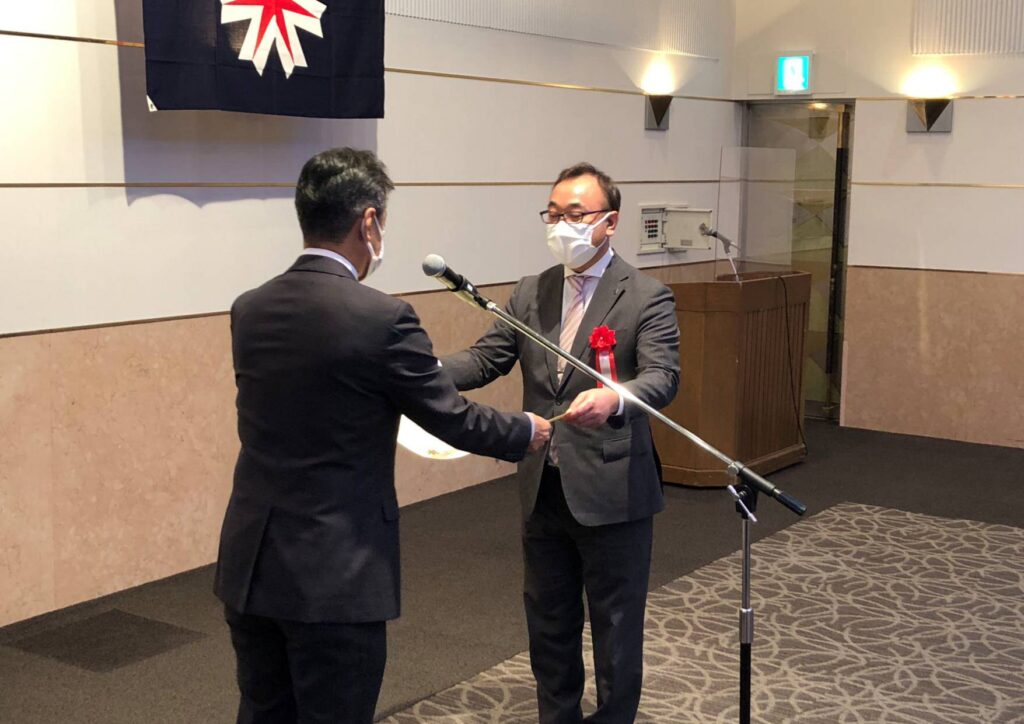 令和5年1月13日(金)、ホテルポールスター札幌で道建設部建築局の工事等優秀者表彰式が執り行われ、細谷建築企画監より須藤 正之代表取締役社長へ知事感謝状が贈呈されました。