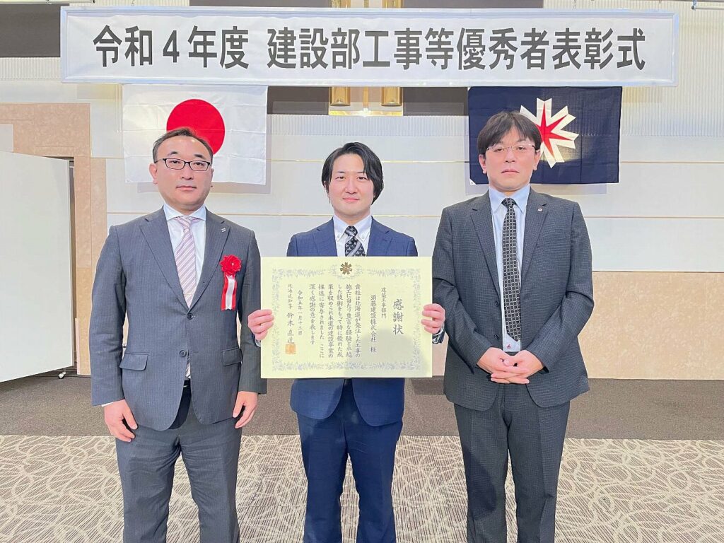 北海道建設部では、各年度ごとに各建設管理部や建設部建築局が発注した工事及び委託業務に関し、特に施行成績等が優秀な者に対して感謝状を贈呈されます。