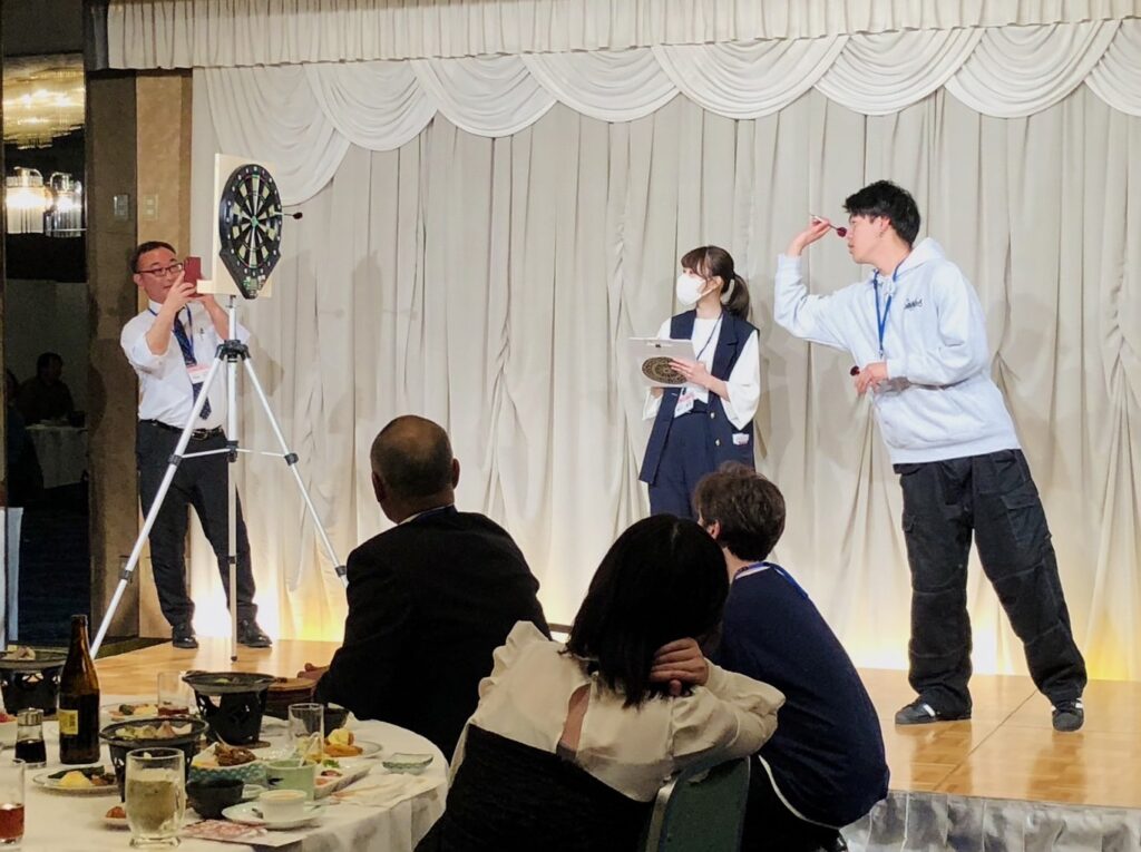 歓迎会の後半には、ビンゴやチーム対抗戦でダーツ大会をやり盛り上がりました。