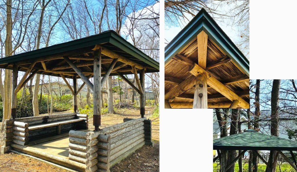 この東屋は作られてから約40年近く経過しており、風雨や積雪によって一部屋根が剥がれ木材が朽ちていました。