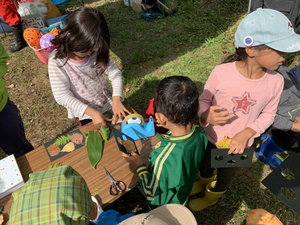 そして最後に子ども向けのアトラクション「葉っぱのステンドグラス体験」では、SUDOの森の色々なカタチや種類の落ち葉を拾い子ども達の個性あふれる素敵な作品ができあがり、芸術の秋を楽しみました✿