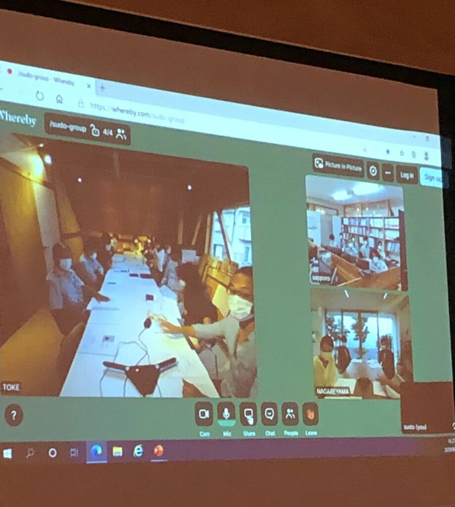 新型コロナウイルス感染拡大の予防対策として三密を避け、本社(伊達市)・札幌オフィス・関東(土気オフィス・流山オフィス)の4拠点でリモート参加での開催となりました。