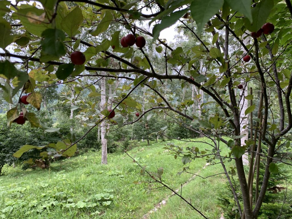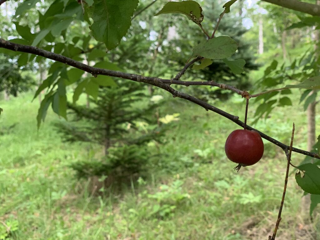 SUDOの森の看板の近くに植えた『ミニりんご』は密かに毎年小さな赤い実をつけています🍎˖°