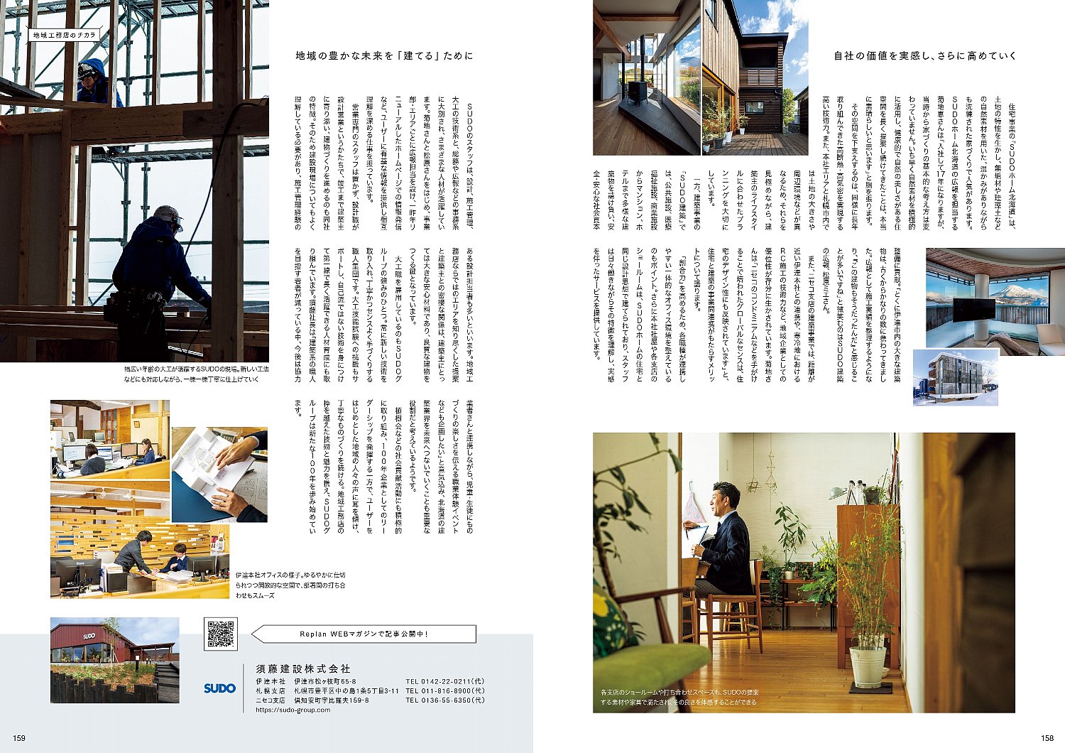 この度、3月29日(月)発売「Replan北海道vol.132 2021春夏号」に弊社が掲載されました。須藤建設の歴史や社風など4ページにわたりフルカラーで掲載されております。是非ご覧ください!