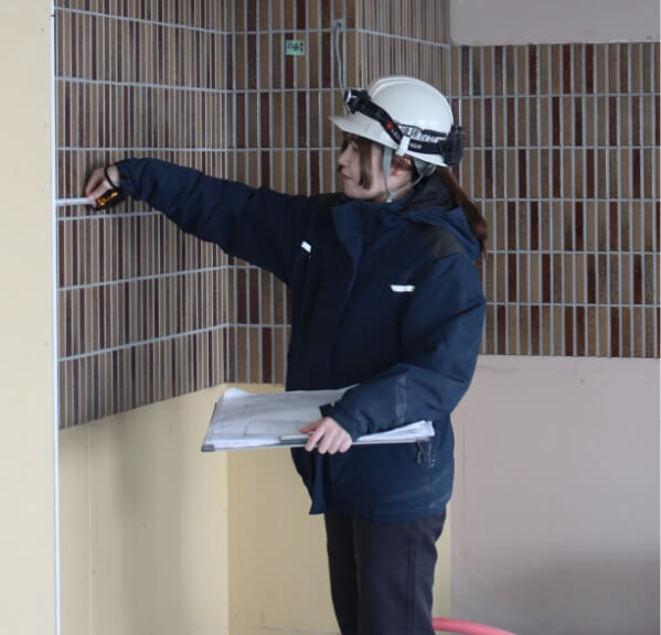 これまでの3年間で携わったのは、水産加工の工場の増改築、温泉施設の改修、ドーム型スポーツ施設の天井の張り替え、そして今携わっているコンドミニアムの改修です。毎回異なる用途の建物に携わるので新鮮さがあります。特にドーム天井の張り替えはめったにない工事だと周りからも言われた貴重な体験でした。住宅部門の場合は自社設計で自社大工さんとのお仕事なので会う人がだいたい同じですが、建築部門の場合、設計が社外の方でいろいろな業者さんも入ります。その都度「はじめまして」から始まって信頼を築くのは大変ではありますが、その分コミュニケーション能力が高まると思います。今後は一級施工管理技士や一級建築士の資格を取って、現場を引っ張っていけるようになりたいです。